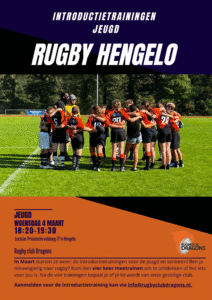 De introductietrainingen voor de jeugd zijn op woensdag 4, 11, 18 en 25 maart. De jongste rugby’ers trainen van 18.30 tot 19.30 uur. De oudere jeugd gaat tot 20.00 uur door.